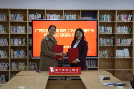 1月3日下午,betway必威西汉姆联官网党委书记周丽华、党委副书记高文涛和“红石榴”学生理论宣讲团部分成员一行17人赴南宁市明天学校开展访企拓岗暨“红石榴”学生理论宣讲活动。