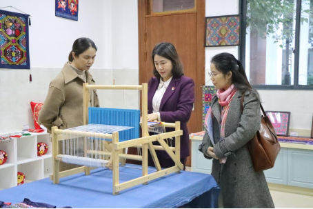 周丽华一行先后参观了明天学校校史馆、壮锦非遗传承馆、种植园以及小太阳劳动教育实践基地,切身感受明天学校良好的校园风采。接着,周丽华一行与明天学校党总支书记、校长李彦萍,副校长黄淑娴,副校长张冬成举行交流座谈。