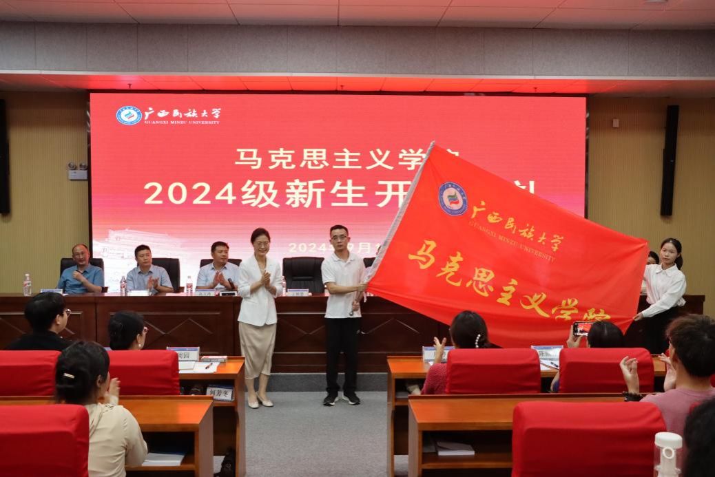 学院党委书记王颖慧为新生代表授院旗,欢迎新生的到来。