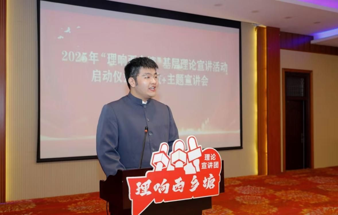 魏亦博作为代表发言。他表示,很荣幸能够加入“理响西乡塘”宣讲团,与大家共担理论传播的重要使命,自己将继续以青年群体为代表,用青年之声传递信仰力量,以创新实践架起理论与群众的桥梁。
