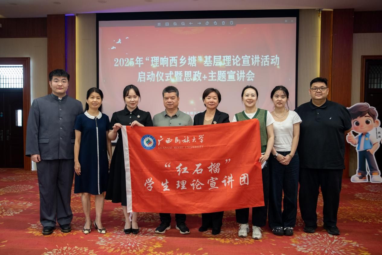 4月27日,我院研究生、广西民族大学“红石榴”学生理论宣讲团成员崔凌芷悦和魏亦博受邀前往西乡塘区大学东路小学,参加中共西乡塘区委宣传部举办的2025年“理响西乡塘”基层理论宣讲活动启动仪式暨思政+主题宣讲会。其中,魏亦博领取“金话筒”并作为代表发言,崔凌芷悦作题为《以和为“桂”——从共富到共识的广西答卷》的理论宣讲。