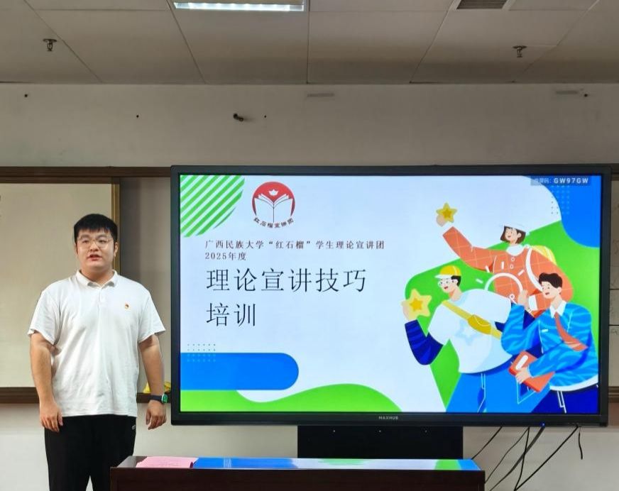 会上,宣讲团团长魏亦博作了广西民族大学“红石榴”学生理论宣讲团2024-2025年度工作总结,回顾了宣讲团过去一年的成果,同时梳理了工作中的经验与不足。接着围绕理论学习、活动创新、校内外合作规划等方面,明确发展方向,提出打造样板宣讲团与党支部,提升宣讲质量。此外,会议还公布了团员分组安排及2025-2026学年工作计划。